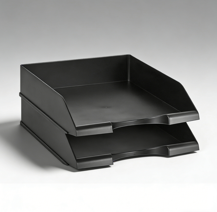 Made from durable material, these trays resist warping under normal office conditions. They function as paper organisers for sorting mail, assignments, or project documents. The simple rectangular shape fits neatly on standard desk surfaces.