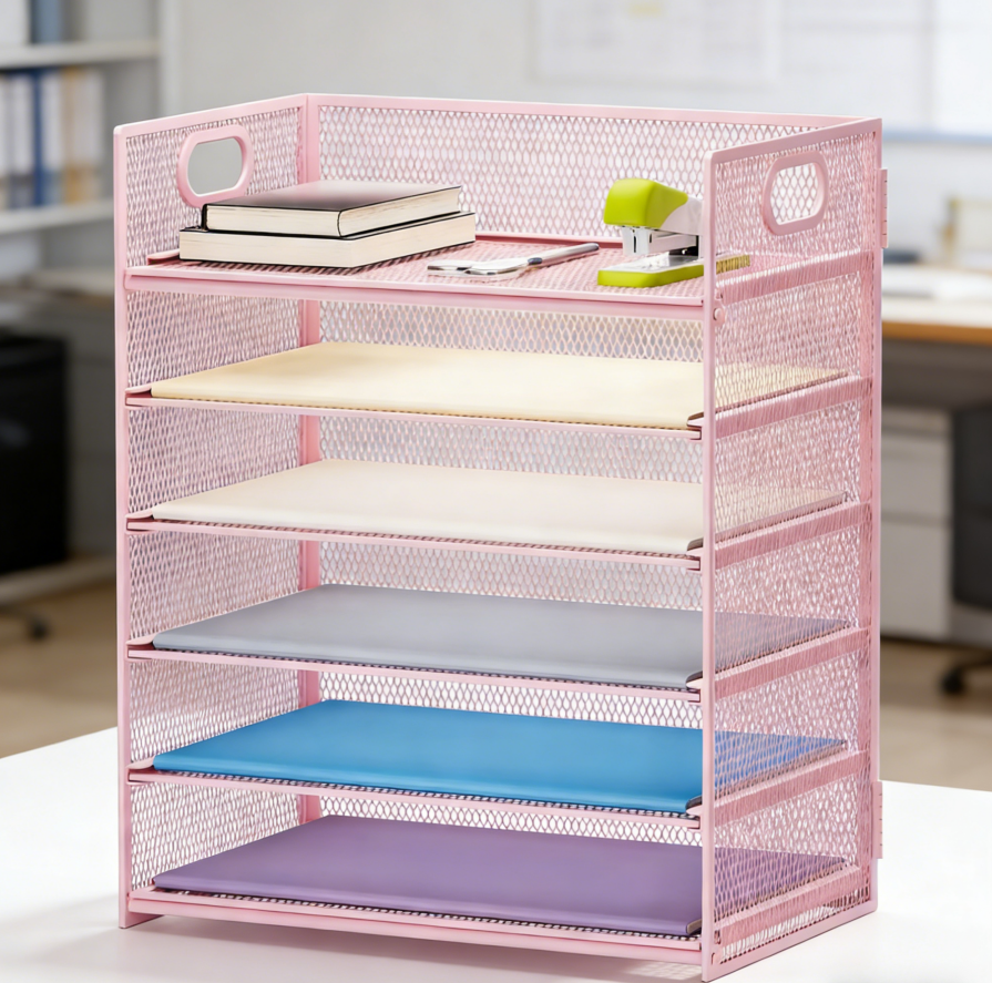 Pink Mesh 6-Tier Paper Organizer with Handle